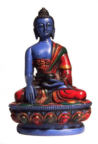 4.5" Lapis Blue Resin Gautama Buddha (Shakyamuni) Statue in Bhumis Parsa Mudra