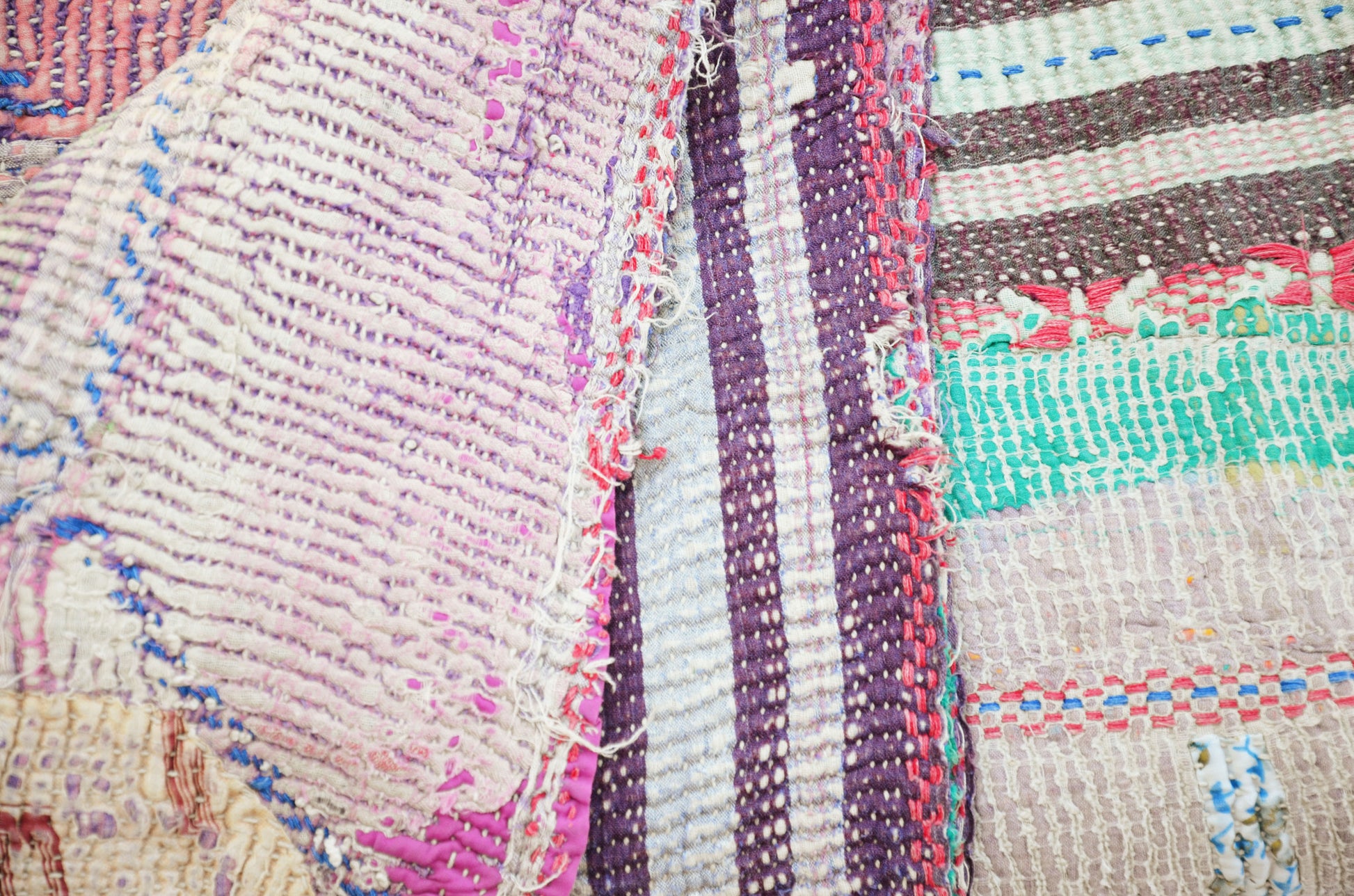 A technique passed down from mothers to daughters for generations- women stitch together layer upon layer of old saris and relished scraps to create throws used as blankets and cushions.