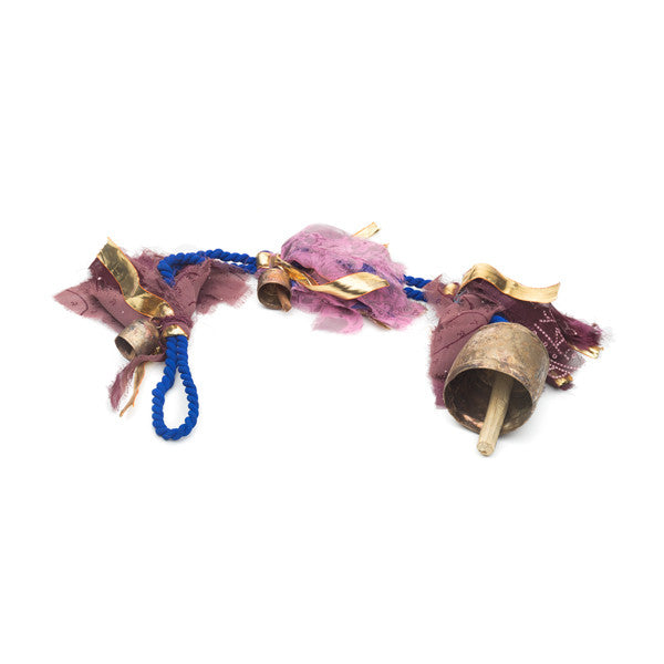 Hanging Strand of Hand Hammered Indian Bells with Upcycled Sari Accents