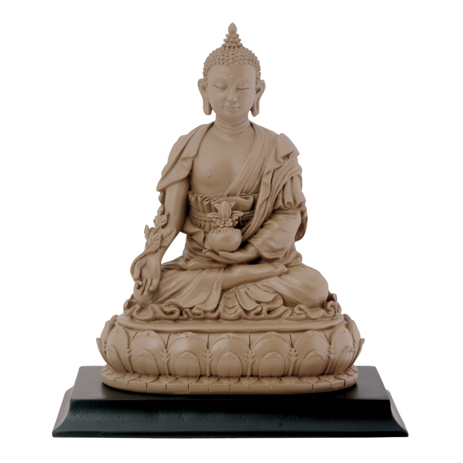 The healing Medicine Buddha is featured in this meditative altar statue. Hand painted for a faux ivory finish, it makes a striking desk or table accent.