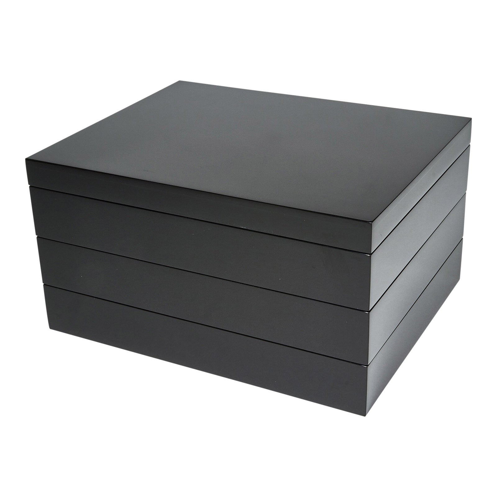 Black Lacquered Wood Multi Level Stackable Jewelry Box With Optional Add-on Tray