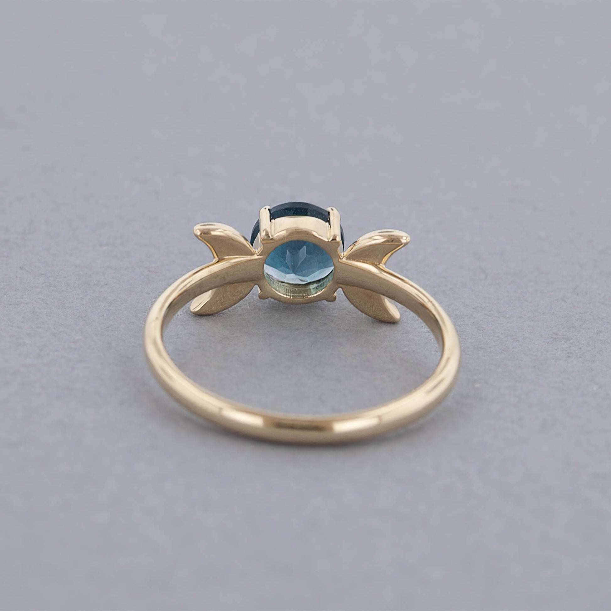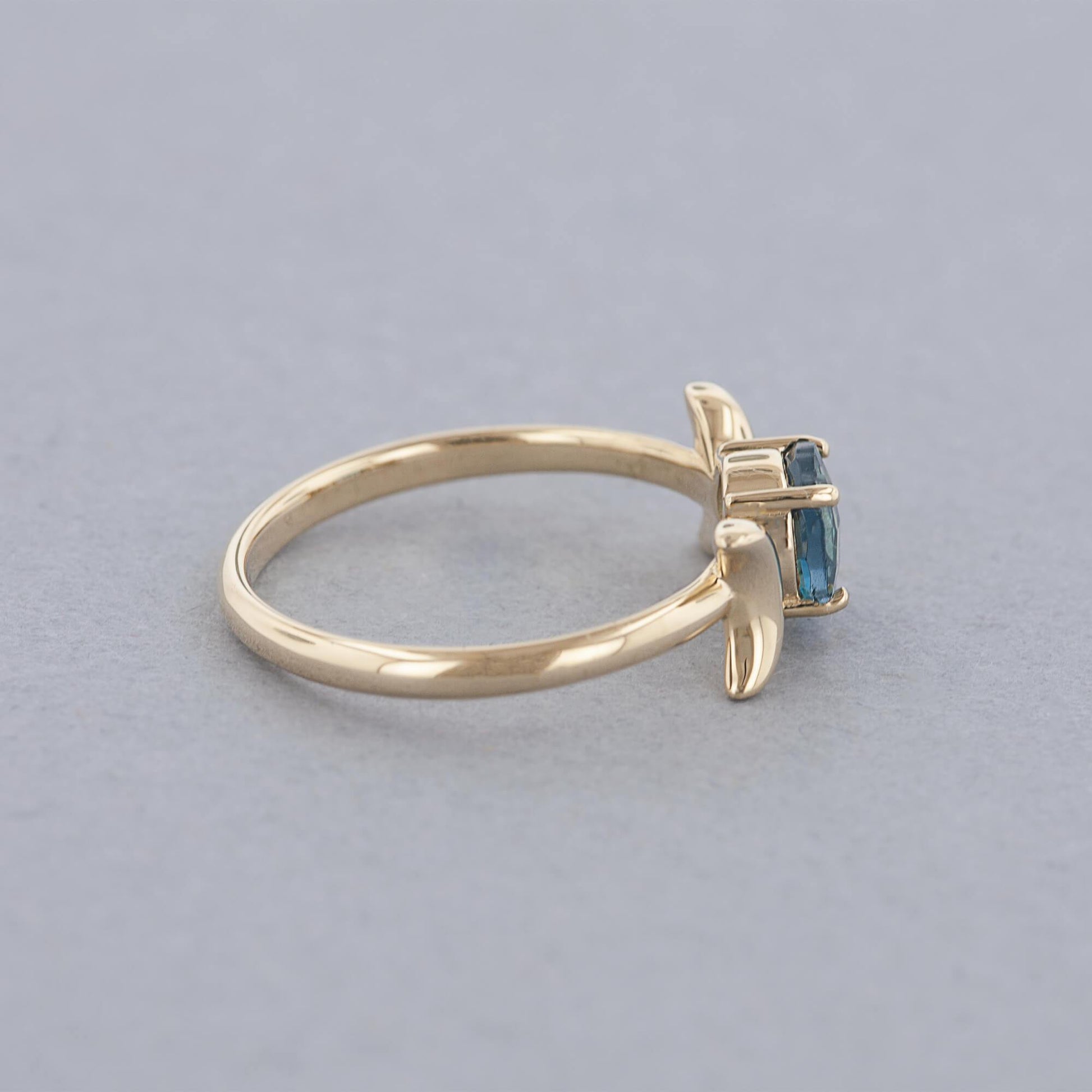 Triple Moon Goddess Ring with London Blue Topaz in 14K Yellow Gold