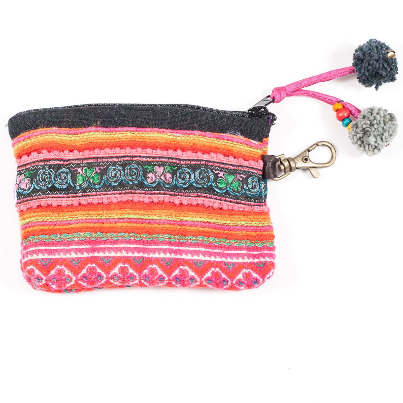 These one of a kind coin purses are handmade from the sleeves of vintage jackets originally hand woven and embroidered by the Hmong hill tribe women in Northern Thailand.