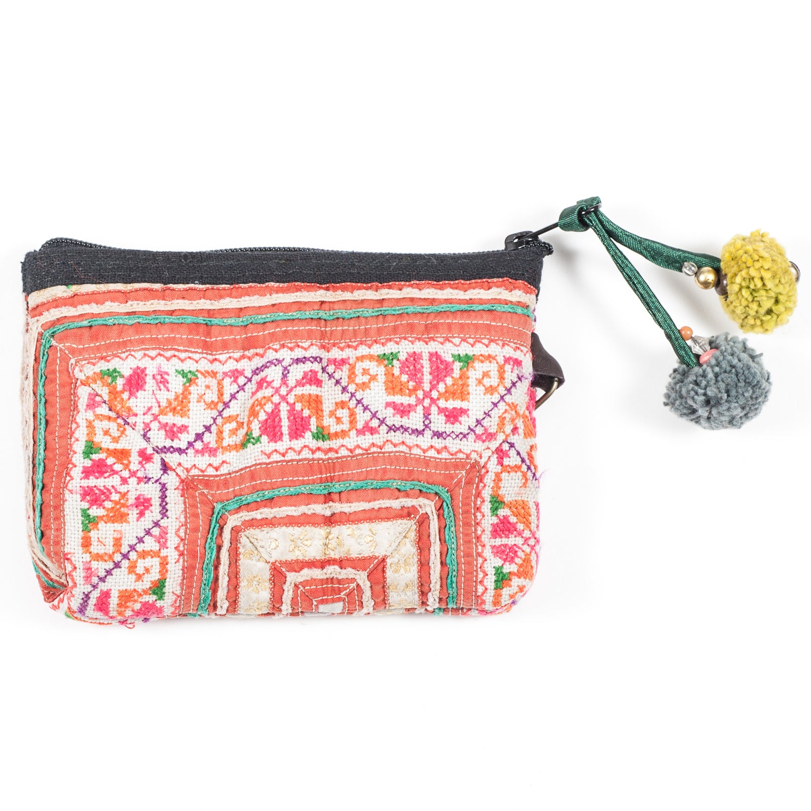 These one of a kind coin purses are handmade from the sleeves of vintage jackets originally hand woven and embroidered by the Hmong hill tribe women in Northern Thailand.